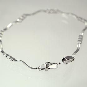 色味がなくテリのある綺麗なダイヤを3石セットした部分が、一定間隔で6カ所あります(計18石)。波打つブレスデザインはとてもエレガントで、ダイヤの輝きとの相乗効果で、非常に上品な高級感を醸し出します!留め具はテニスブレスのようになっており、外れにくくなっていて安心です。