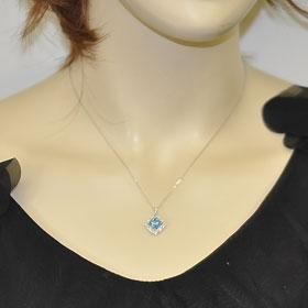 K18WG・ブルートパーズ&ダイヤ クラシカルスクエアペンダント(ネックレス)