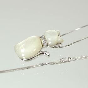 K10WG・白蝶貝 仔猫ペンダント(ネックレス)