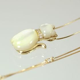 K10・白蝶貝 仔猫ペンダント(ネックレス)