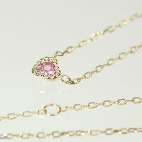 上品なピンク色!ピンクトルマリンを人気のハートシェイプカットにして留めた超可愛いイエローゴールドのペンダントネックレスです!ネックレスチェーンもトップ脇に固定ですので、知らない間に引き輪が前に来てしまう心配もありません。