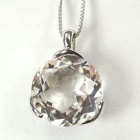 大粒の水晶を留めた存在感のあるペンダントで、とっても瑞々しく高級感のあるペンダントに仕上がっております。