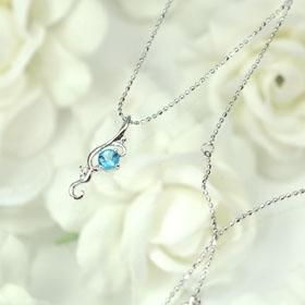 まるで蔦が絡まるようなトップにラウンドカットのブルートパーズ(直径4mm)とその下に1石のメレダイヤを留めた、個性的で上品なペンダントです。トップの高さも約2cmあり、存在感もあって質感も高くオススメです。