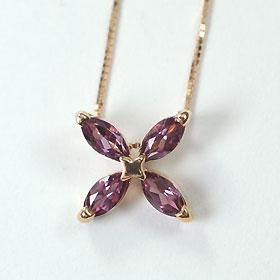 4石のマーキスカットのロードライトガーネットがお花のようなペンダントです。上品かつ可愛いですよ!