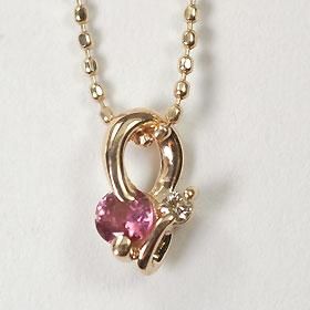 ひねったようなピンクゴールドの枠に、ピンクトルマリンと脇石としてダイヤが輝くシンプルなデザインのペンダントです。