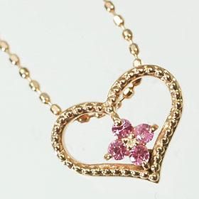 K10PG・ピンクサファイア ハート&フラワーペンダント(ネックレス)