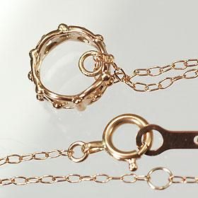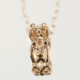 サークル全体に模様がほどこされた、人気のピンクゴールドの地金のみのペンダントです!地金のみなので日常使いに最適です!