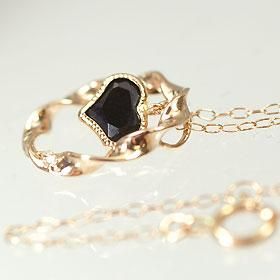 立体感のあるサークルの中で、ハート型のオニキスが揺れる可愛らしいペンダントです!サークルの一部にはポイントで、ダイヤモンドがセットされています!