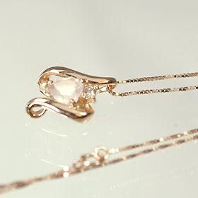 K10PG・ローズクォーツ&ダイヤ ハートシェイプペンダント(ネックレス)