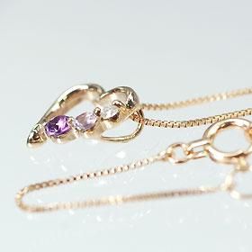 K18PG・ダイヤ0.01ct&アメジスト スリーストーンハートペンダント