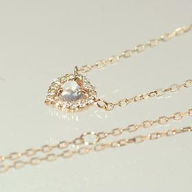 K10PG・ブルームーンストーン&ダイヤ0.08ct ハートペンダント(ネックレス)