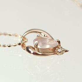 K10PG・ローズクォーツ&ダイヤ ハートペンダント(ネックレス)