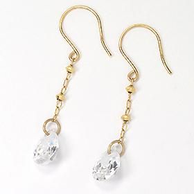 しずく型のキュービックジルコニアが耳元で優雅に揺れるフックピアスです。質感も抜群で高級感のある雰囲気を演出してくれます。大きく揺れる様も躍動感があってグッド!