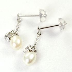 耳元からぶら下がり揺れる淡水パールとキュービックジルコニアがとっても上品です。