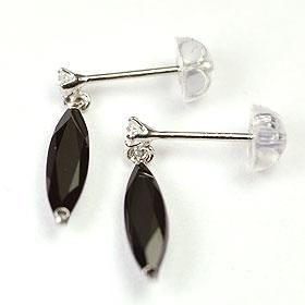 マーキスカットのオニキスが耳元で揺れる大人っぽいピアスです。