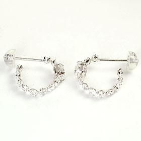 見た目はフープピアスに見えますが、ポストとキャッチのついたピアスで、エタニティーっぽく回り込む枠にキュービックジルコニアを敷き詰め、そこから見ても強烈に輝きます。