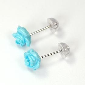 トルコ石を薔薇の花のようにカットした涼しげで上品なピアスです。ロープライスで個人的にも一押しのピアスです。
