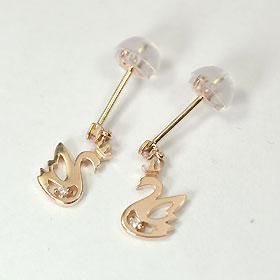 大きくなったら白鳥に!って感じで、まさにおとぎ話から飛び出てきたようなメルヘンチックなモチーフのピアスです!ポスト先端にピンクサファイアを、本体にはダイヤの輝きが上質感を醸し出しています。