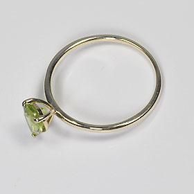 ペアシェイプカットのペリドットと、ペリと相性の良いイエローゴールドの地金のコントラストがなんとも絶妙な素敵なリングに仕上がっております。