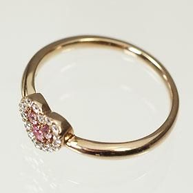 ハートの中にピンクカラーのサファイアを3石セットしたリングです。地金にピンクゴールドを使用し、とてもフェミニンなデザインになっています。
