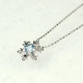雪の結晶をモチーフにしたペンダント。直径約4mmのブルートパーズが印象的!透き通るようなブルートパーズがとっても素敵に胸元を演出してくれます。