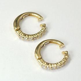 エタニティーデザインのピアリングで、着けた感じはまさにエタニティーピアスをしているのと同じに見えます。ダイヤもテリのある綺麗なダイヤを片側7石並べて(両側で14石トータル0.28ct)、耳元でとってもゴージャスで上品に輝きます!