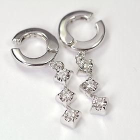色味がなくテリのあるダイヤを片側3石(左右合計6石で0.2ct)セットした、人気のスリーストーンデザインのピアリングです。
