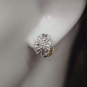ピアスのようなイヤリング。ピアス穴がない方でも、ピアス感覚で着けることが出来ます。着ける際は、ピアリングが落ちない程度まで指で挟むだけで大丈夫。その位置で固定され、耳たぶの形状と独自技術(特許申請済み)により、そう簡単には落ちませんし、長時間つけていても痛くありません。一回つけていただくと、「これは落ちないね!」とお分かりいただけると思います。メーカーテストでは約1000回の着用まででも全然問題ありませんでした。それでも「落ちてしまわないの?」と心配の方もいらっしゃると思いますが、もし1本だけなくなってしまっても、ご相談いただければ1本での販売もさせていただきます(何年かたってメーカーが生産を止めてしまわない限り)。あと、痛くないとは記載させていただきましたが、親の仇をうつかのように「これでもか!」ってくらい締め付けると痛いですから(笑)注意してくださいね。