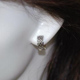 ピアスのようなイヤリング。ピアス穴がない方でも、ピアス感覚で着けることが出来ます。着ける際は、ピアリングが落ちない程度まで指で挟むだけで大丈夫。その位置で固定され、耳たぶの形状と独自技術(特許申請済み)により、そう簡単には落ちませんし、長時間つけていても痛くありません。一回つけていただくと、「これは落ちないね!」とお分かりいただけると思います。メーカーテストでは約1000回の着用まででも全然問題ありませんでした。それでも「落ちてしまわないの?」と心配の方もいらっしゃると思いますが、もし1本だけなくなってしまっても、ご相談いただければ1本での販売もさせていただきます(何年かたってメーカーが生産を止めてしまわない限り)。あと、痛くないとは記載させていただきましたが、親の仇をうつかのように「これでもか!」ってくらい締め付けると痛いですから(笑)注意してくださいね。
