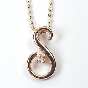 K10PG・ダイヤ0.03ct イニシャルペンダント「S」