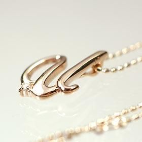 イニシャルモチーフのペンダントで、自分のイニシャルで個性をアピールしたり、彼女のイニシャルをプレゼントにご利用されたりと、あらゆる用途で人気のペンダントです。ピンクゴールドでとても可愛らしくもあり、ダイヤを1石セットしてありますのでジュエリーとしての質感も醸し出しております!