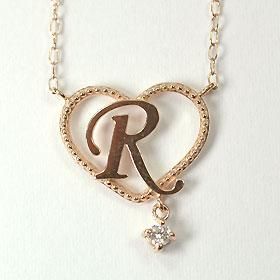 選べるカラー!ダイヤがぶら下がるイニシャルハートペンダント 「R」