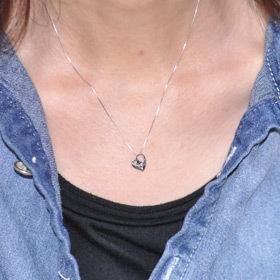 アシンメトリーなフォルムのハートがお洒落に胸元でキラリと輝きます。