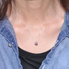 誕生石を一粒、少しかしげたハートにセットしたペンダント。