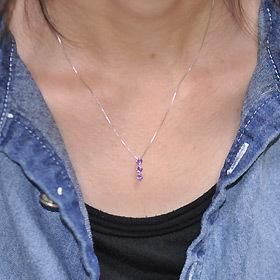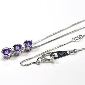 【2月の誕生石】 K10WG 誕生石スリーストーンペンダント(ネックレス) (アメジスト)