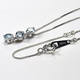 【3月の誕生石】 K10WG 誕生石スリーストーンペンダント(ネックレス) (アクアマリン)