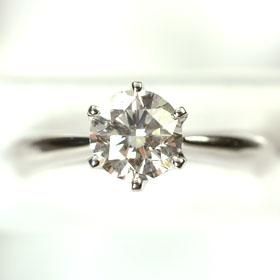 一般的にほぼ無色で綺麗なダイヤモンドと、高級素材であるプラチナのシッカリとした枠で、贈り物として文句のないプラチナダイヤモンドリングです。