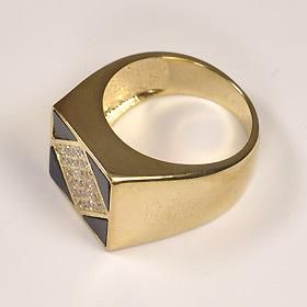 高品質CZ×ゴールド 印台スクエアパヴェメンズリング