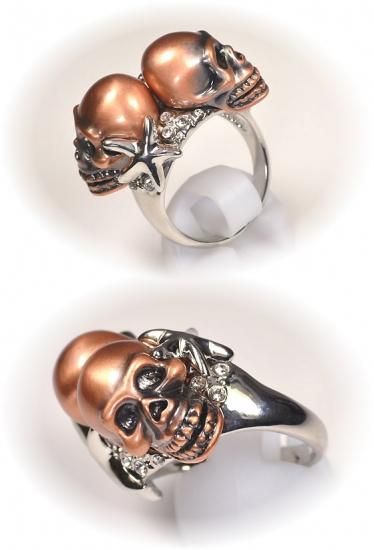 まさにカリブの海賊を彷彿させるような、お宝リングです!高品質クリスタルを惜しげなく敷きつめ、2つのスカルや海星のモチーフが雰囲気をバリバリ醸し出しております♪
