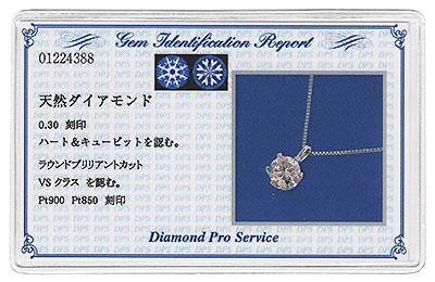 プラチナ・ダイヤモンド0.3ct(VSクラス・H&C・鑑別書カード付) ダイヤモンド ネックレス 一粒 Pt900