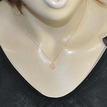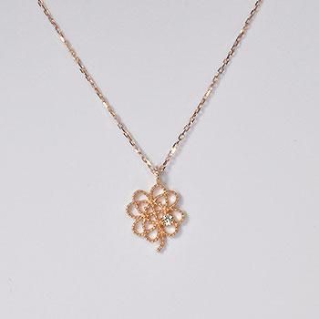 K10PG・ダイヤモンド0.01ct 幸運の四つ葉のクローバーペンダント(ネックレス)