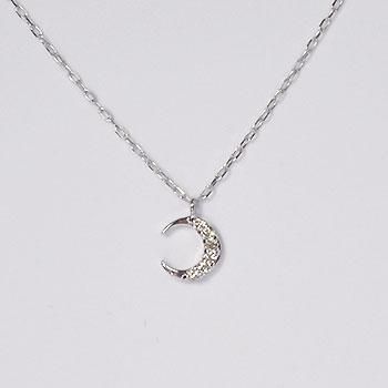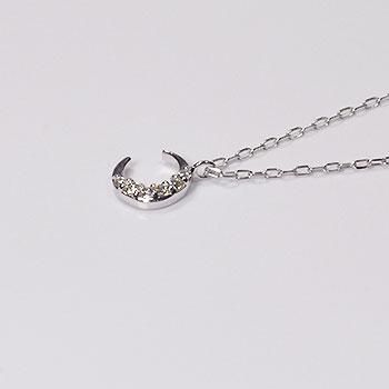 K10WG・ダイヤモンド0.03ct ムーンパヴェペンダント(ネックレス)