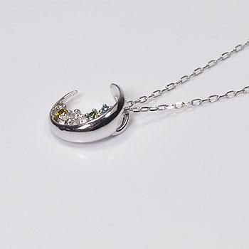 現品限りの在庫処分 K10WG・カラーダイヤモンド ロマンティックムーンペンダント(ネックレス)