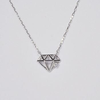 まさにダイヤモンドを象ったモチーフに、本物のダイヤを一石添えたユニークなダイヤモンドネックレスです。存在感もあってクールです♪