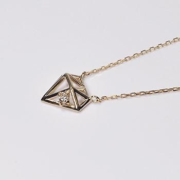 まさにダイヤモンドを象ったモチーフに、本物のダイヤを一石添えたユニークなダイヤモンドネックレスです。存在感もあってクールです♪