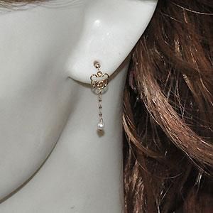 可愛いクマちゃんのオープン枠にパールがチェーンでぶら下がり、優雅に揺れる上品キュートなピアスです♪