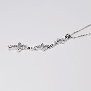【有名ブランド処分品】【87%OFF】シルバー925×特殊カットの高品質CZ♪トリプルクロスペンダント(ネックレス)