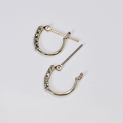 こちらもオススメの限定セール!前面にダイヤモンドを5石(合計10石で0.2ct)セットしたハーフタイプのエタニティーフープピアスです。前面にダイヤを集中させておりますので、前から見たボリュームは0.4ctのフルエタニティーと互角です。