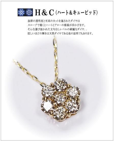 「ハート&キューピッド」とは、最高のカットグレードの中でも、特にプロポーションとシンメトリー(対称性)の良いダイヤモンドに現れる8つのハートと矢。テーブル面からはキューピッドの矢(アロー)、パビリオン側からはハートの模様が見られる現象を指します。ハートを矢で射抜く天使の矢に例えて「ハート&キューピッド」と呼ばれています。そんな文句なしの輝きを放つダイヤを7石敷き詰めたミステリアスフラワー♪遠目に見ると大きな一粒石にも見えてしまう人気モチーフです。