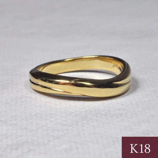 K18 18金イエローゴールド クロスウェーブリング(指輪)